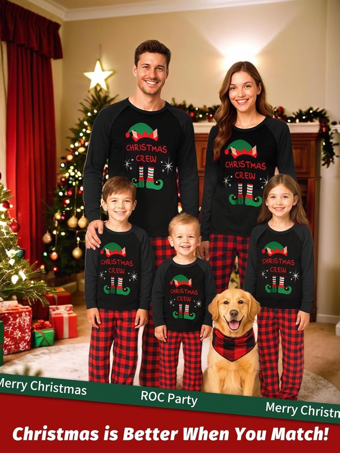 ROC PARTY Matching Family Christmas Pajamas Sets - Festive Xmas PJs, Holiday Sleepwear for Families Photos & Gift Giving (Youth, 8-10 Years)