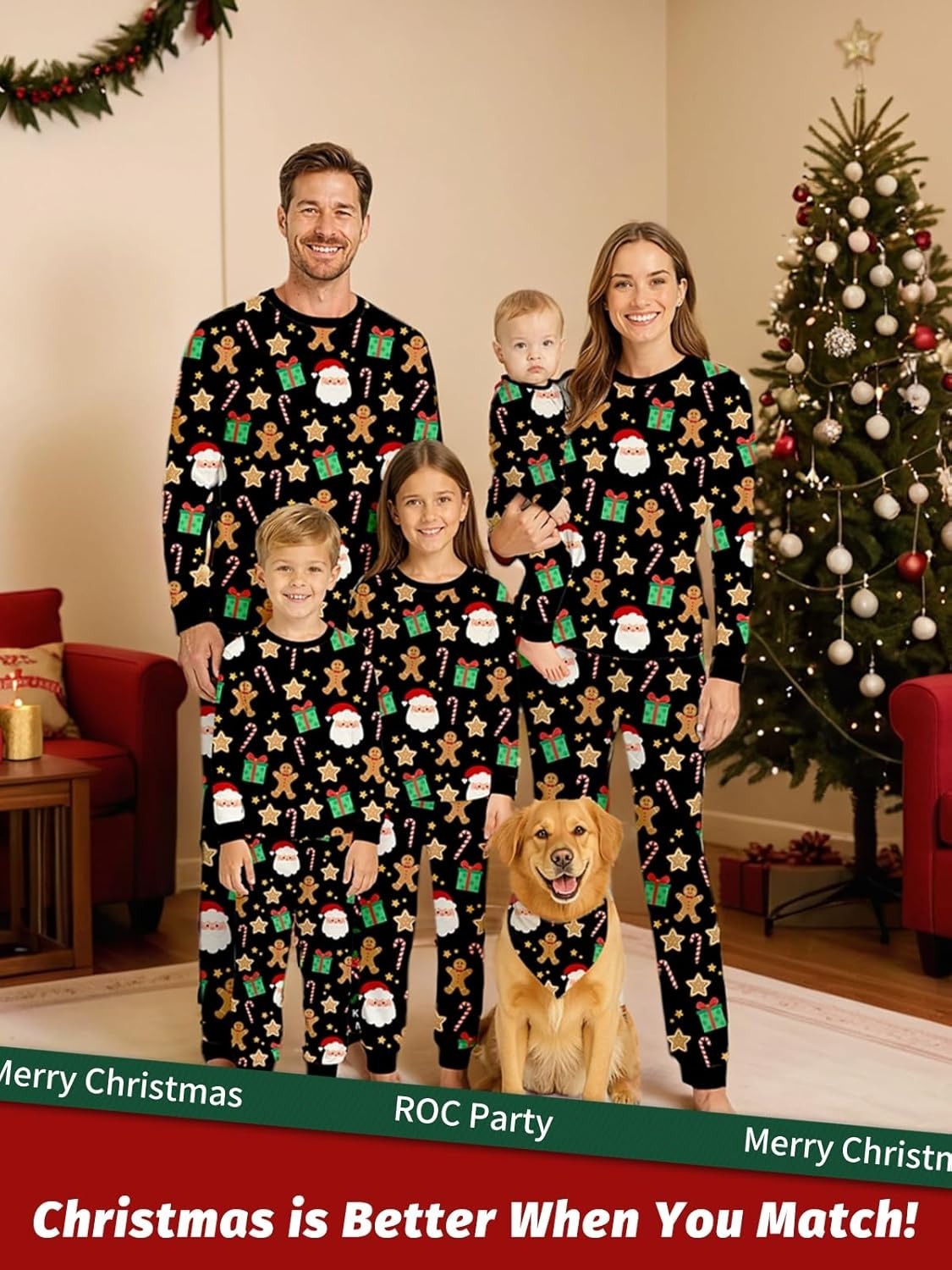 ROC PARTY Matching Family Christmas Pajamas Sets - Festive Xmas PJs, Holiday Sleepwear for Families Photos & Gift Giving (Youth, 8-10 Years)