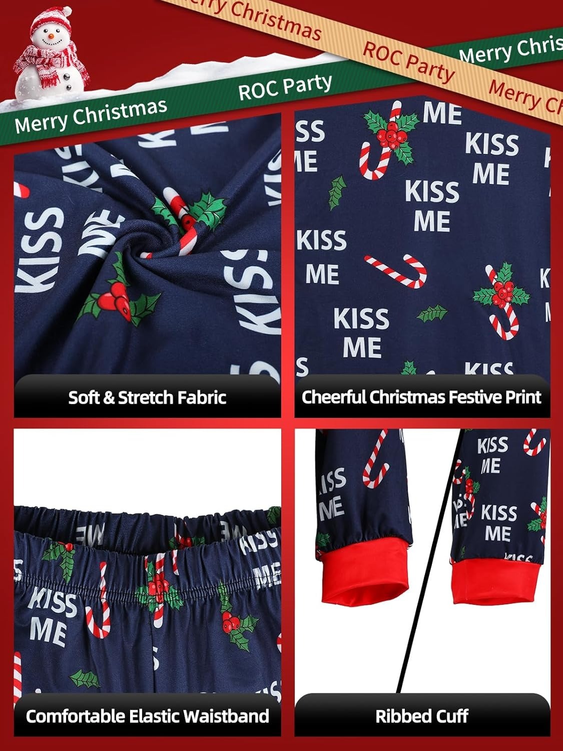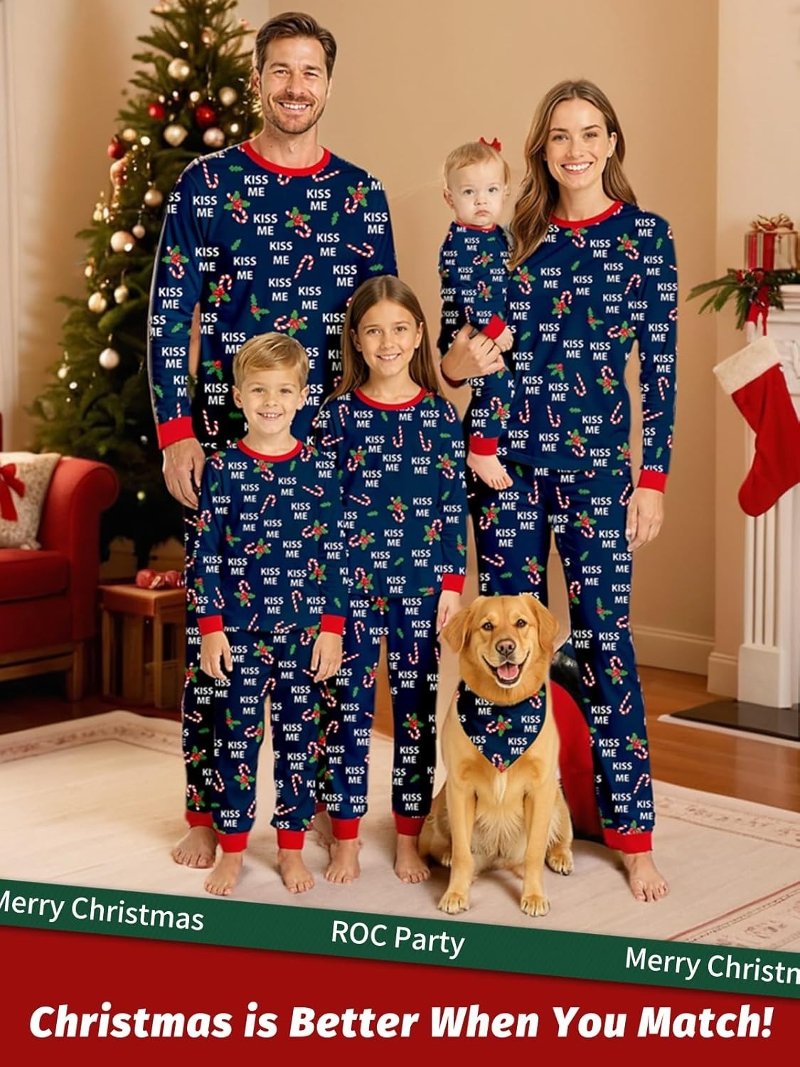 ROC PARTY Matching Family Christmas Pajamas Sets - Festive Xmas PJs, Holiday Sleepwear for Families Photos & Gift Giving (Youth, 8-10 Years)