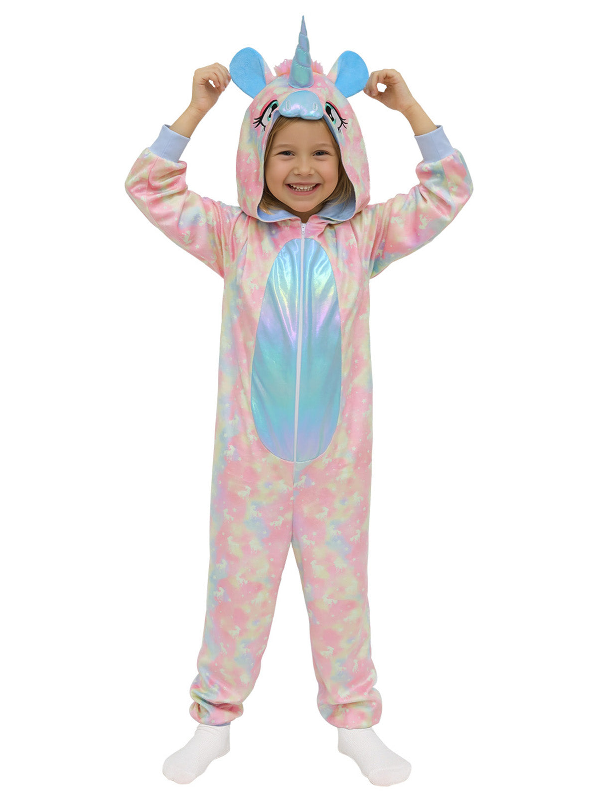 Unisex Kids Unicorn Onesie Costume - Hooded 3D Animal Jumpsuit for Halloween, Cosplay & Party